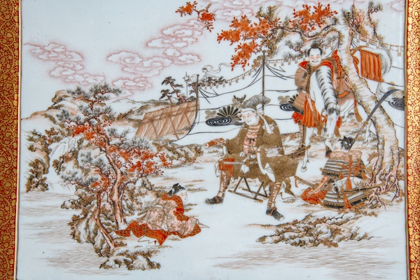 No.070 赤絵金彩武者絵陶板
